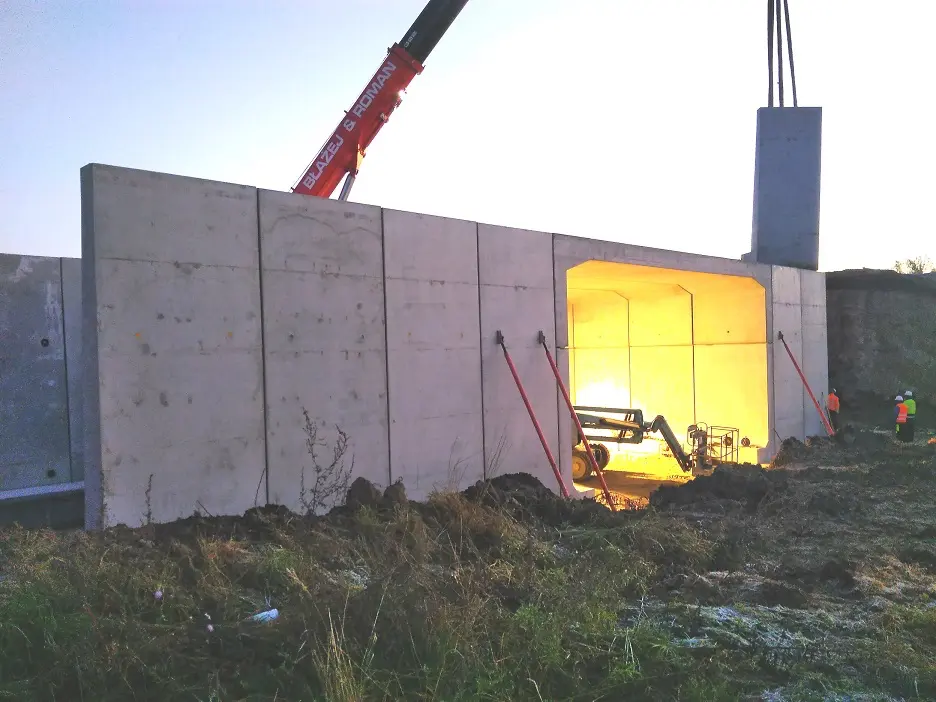 Most kolejowy wykonany z prefabrykowanych elementów systemu ABM FRAME. Konstrukcje zmontowano przy wzmożonej mobilizacji, montaż trwał nieprzerwanie 26,5 godz. W tym czasie zmontowano cały obiekt wraz ze ścianami oporowymi.