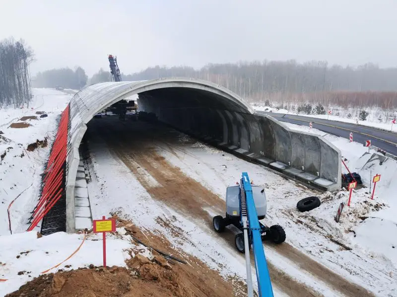 Przejście dla zwierząt PZGd-9. Obiekt został wykonany z prefabrykowanych sklepień, ścian bocznych oraz ścian oporowych systemu ABM ARCH. Pomimo utrudnień, w postaci niedogodnych warunków atmosferycznych oraz umiejscowienia lini elektroenergetycznej o mocy 400 kV w pobliżu obiektu, obiekt został zamontowany zgodnie z harmonogramem.