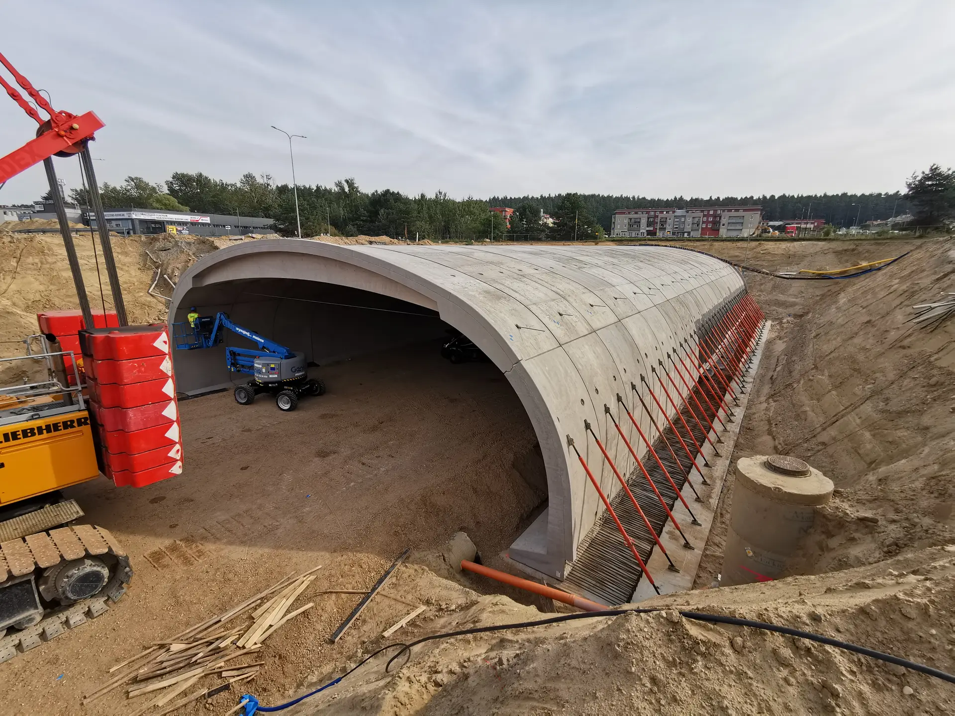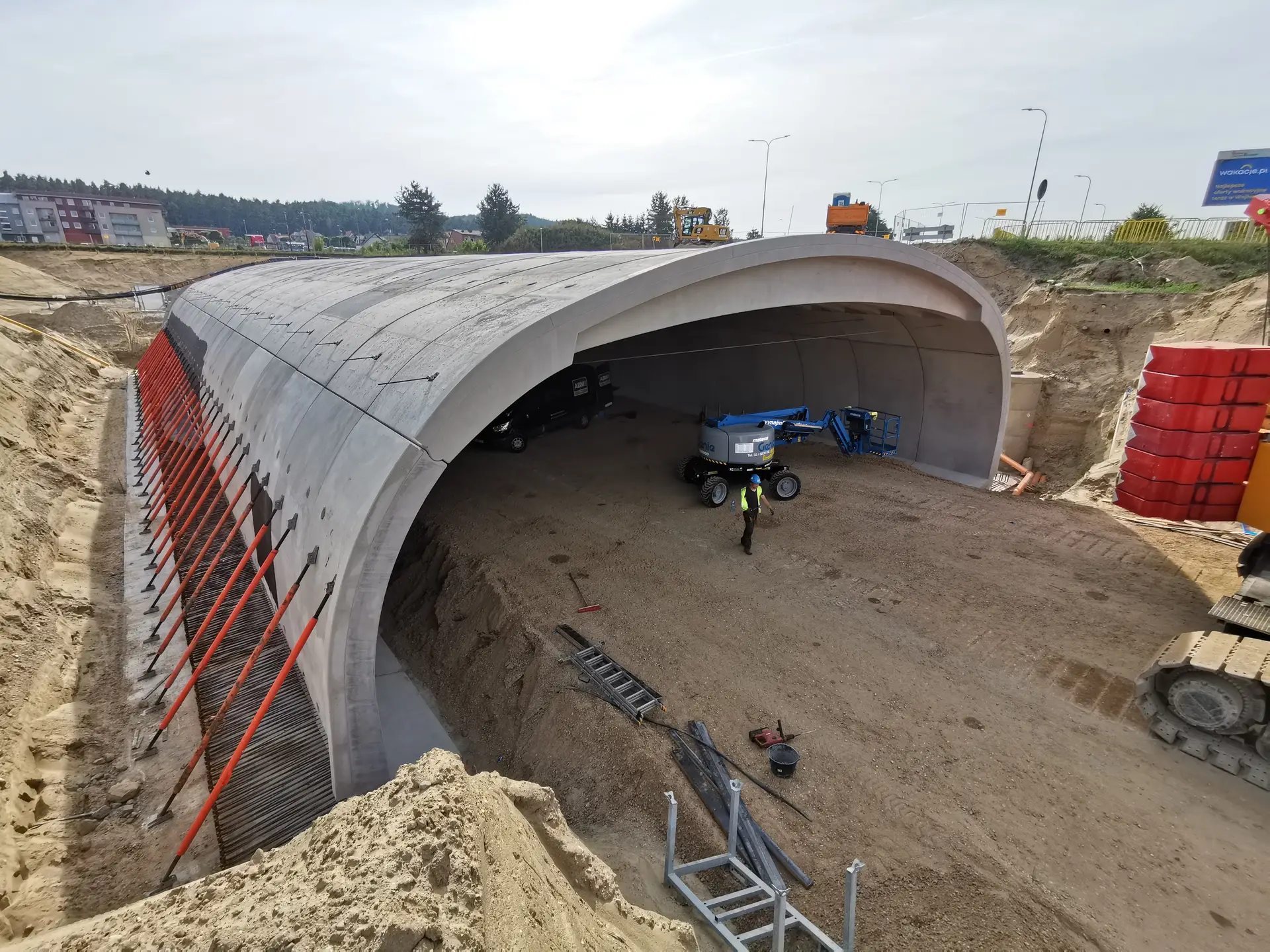 Wiadukt drogowy ,,WD-1, WD-2, WD-3". Obiekt składał się z prefabrykowanych elementów systemu ABM ARCH.